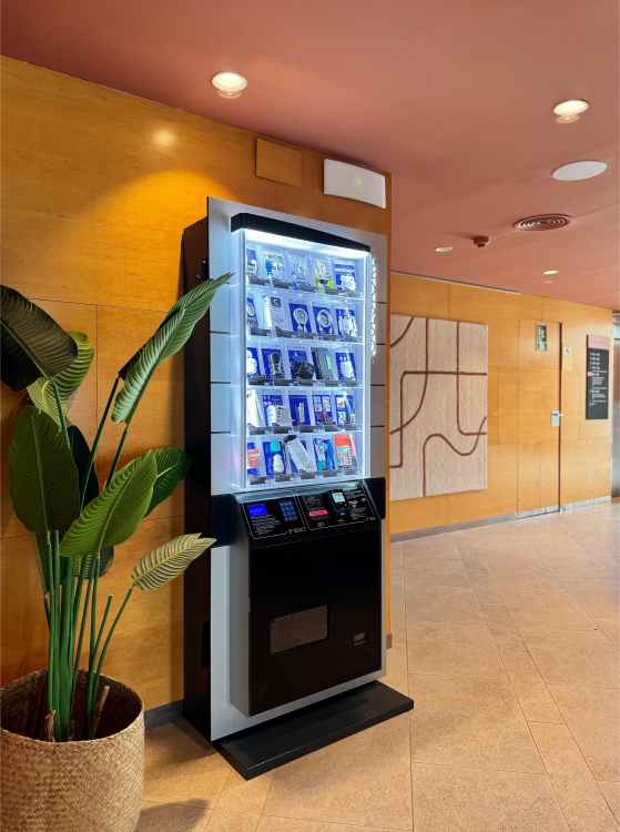 El servicio es totalmente gratuito para el hotel, nos encargamos de todo: instalación, reposición, mantenimiento y pagamos al hotel un porcentaje sobre la facturación.