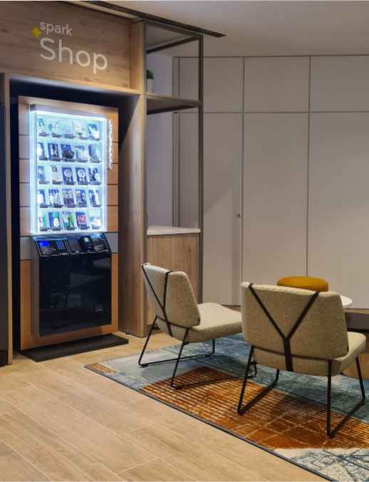 La experiencia de tus huéspedes es tu prioridad. Nuestro innovador servicio de Smart Boutiques les ofrece cargadores, adaptadores y otros accesorios esenciales al instante, garantizando su satisfacción y sin esfuerzo del personal.